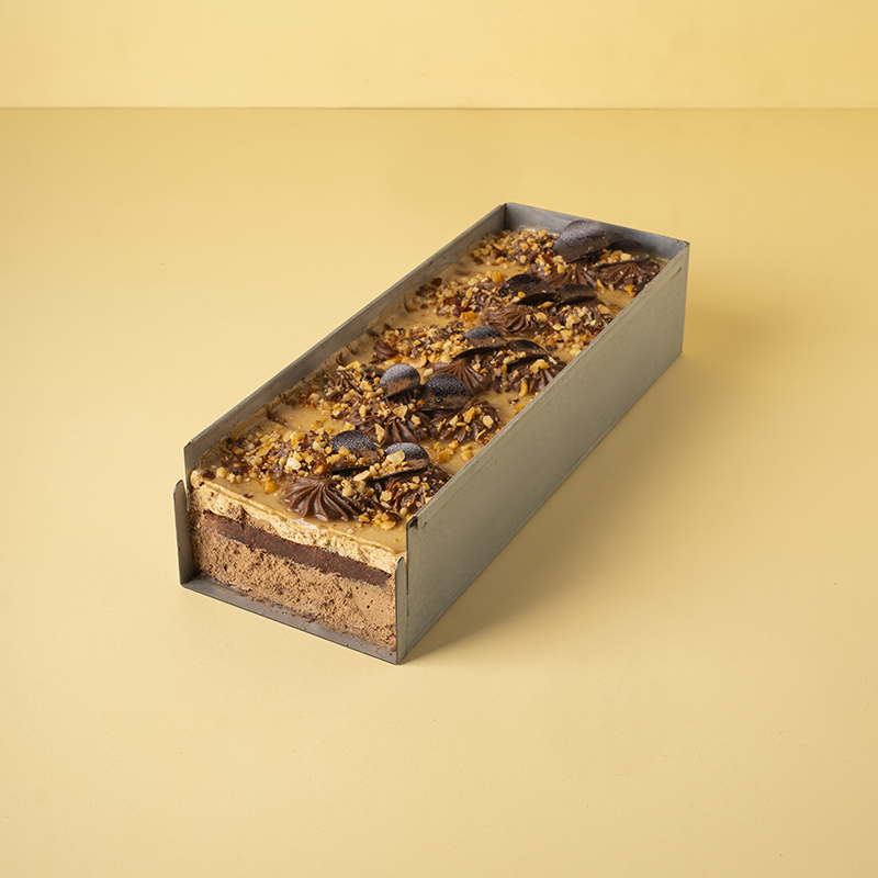 Una fetta elegante e avvolgente, dove il cioccolato si fonde armoniosamente con la delicatezza della nocciola.