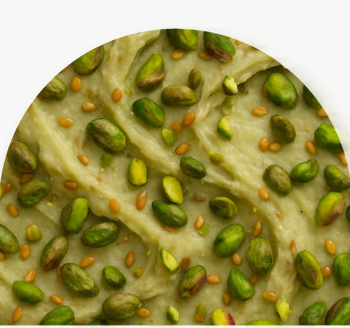Un gelato raffinato in cui la pistacchio esprime tutta la sua intensità, arricchito da una croccantezza delicata e dalla nota tostata del sesamo. Un equilibrio armonioso tra cremosità e texture, ispirato ai sapori mediterranei.