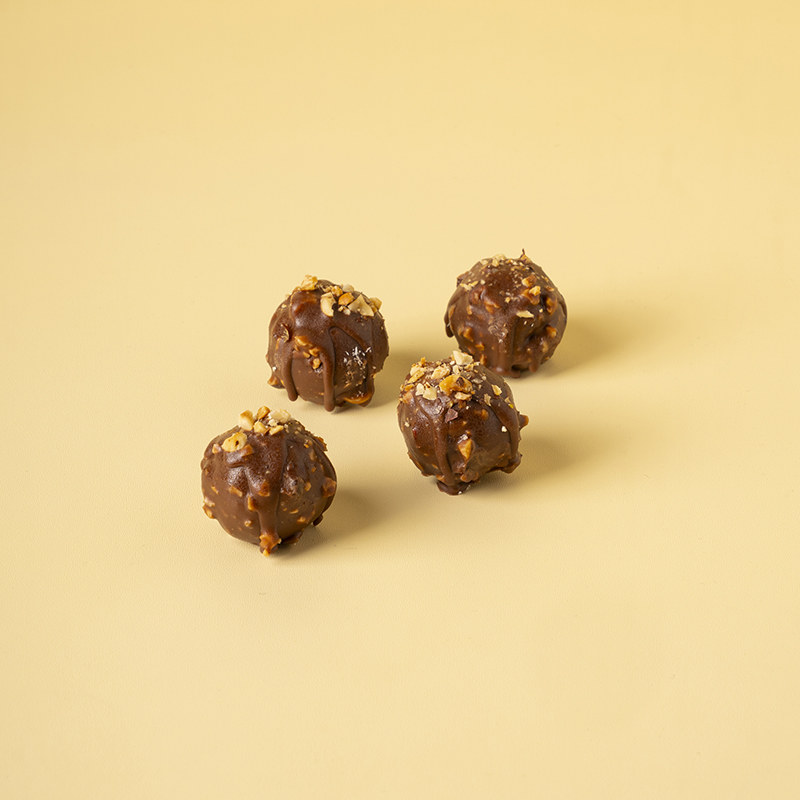 Ispirato ai grandi classici, questo tartufo combina un croccante al cioccolato con una crema fondente al cioccolato e nocciola, ricoperta da una glassa rocher alla nocciola. Un dolce ricco e avvolgente, dal gusto intenso.
