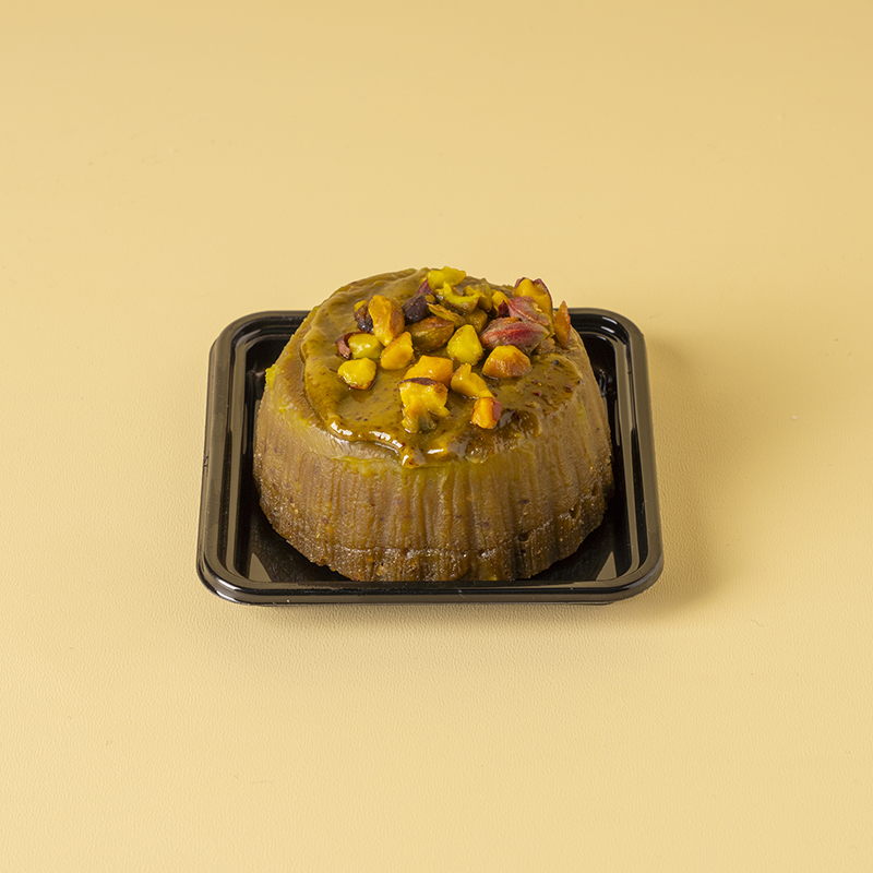 Un tortino al pistacchio profumato, con una struttura morbida e un cuore fondente. Da riscaldare leggermente per esaltare tutta la finezza e l’intensità del pistacchio.