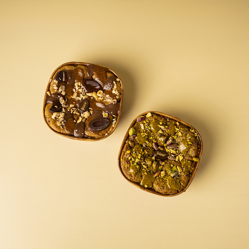La Cookies Box -Chocolat & Noisette- associe une crème gianduja onctueuse, des noisettes croquantes et des cookies fondants dans une création généreuse à partager. À réchauffer quelques instants avant dégustation pour révéler toute l’intensité du chocolat et une texture encore plus réconfortante.
