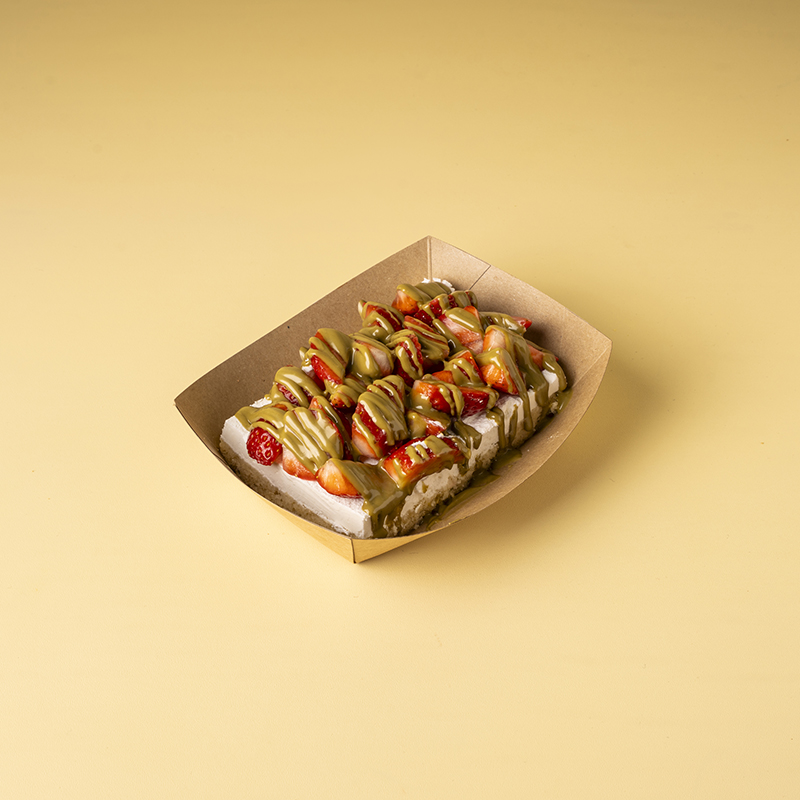 Le Nuage à la Fraise associe un moelleux vanille à une crème maison onctueuse, généreusement garni de fraises fraîches et sublimé d’un nappage pistache coulant. Une création fraîche et délicatement fruitée, à partager à deux pour un moment doux et gourmand.