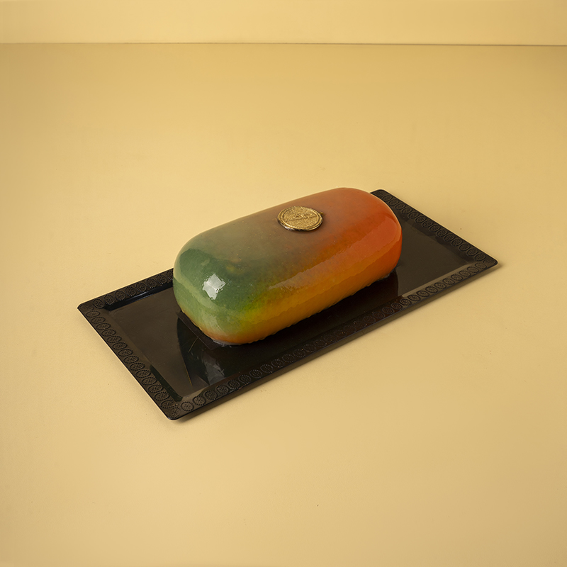 Inspirée par les marchés ensoleillés de Palermo, cette création en trompe-l’œil mangue dévoile un cœur aux accents tropicaux, où la fraîcheur de la mangue rencontre l’intensité du fruit de la passion. Reposant sur un moelleux vanille, elle offre une expérience fruitée, lumineuse et délicatement ensoleillée.